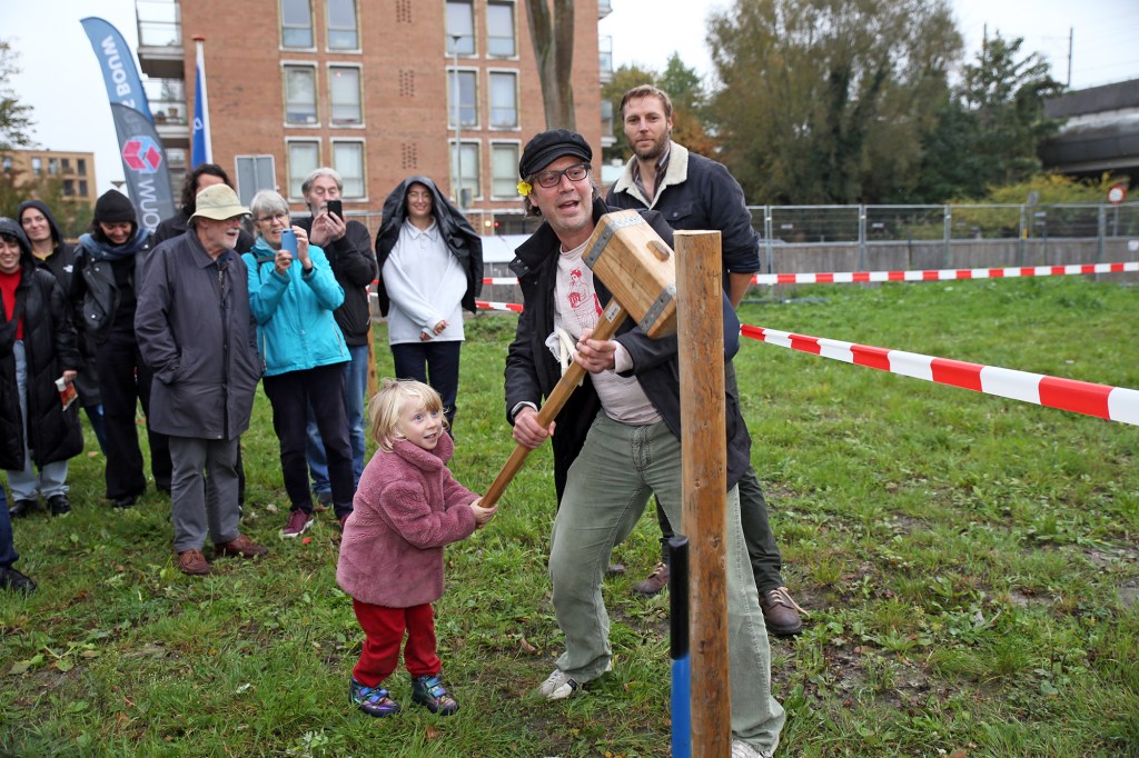Start bouw woon coöperatie Eureka! Wat een bijzonder moment. Samen vormden de 100 toekomstige huishoudens het silhouette van het gebouw en sloegen de kinderen de eerste paal. In het multigenerationele en rainproof gebouw in de Kolenkitbuurt in Amsterdam komen 80 midden huur appartementen, 20 betaalbare vrije huur en 600m2 maatschappelijk vastgoed. Naast de grote entree hal zijn er de gemeenschappelijke ruimten in het gebouw waar bewoners met elkaar kunnen eten, wassen, bewegen of klussen. Kijk voor meer informatie op eurekaamsterdam.nl of xoomlab.nl