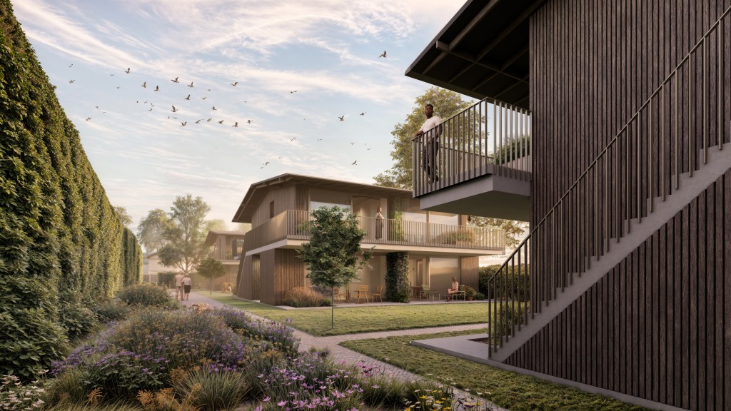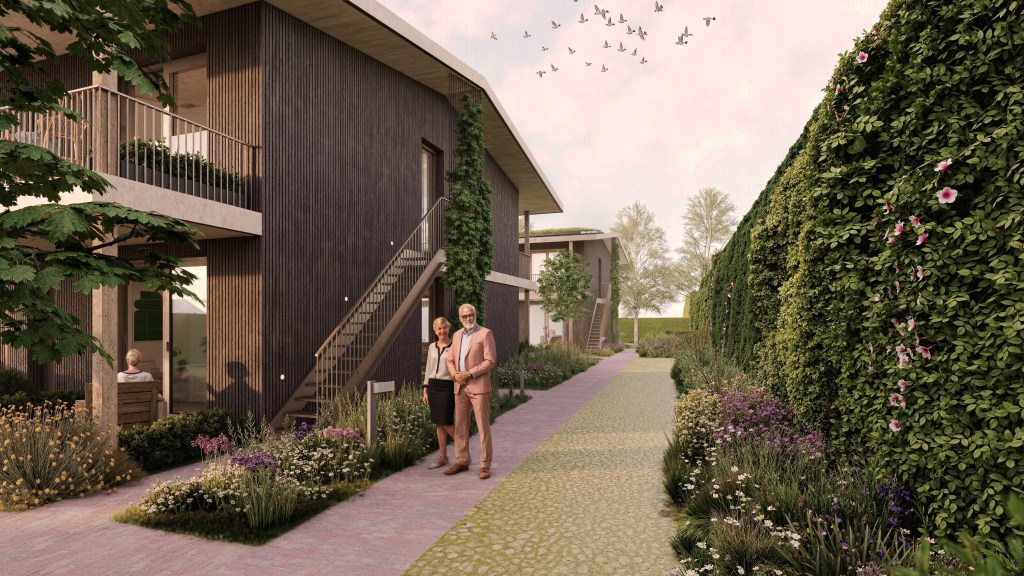In het Brabantse dorp Bakel wordt binnenkort gestart met de bouw van twaalf betaalbare biobases appartementen verdeeld over 3 blokken. De woningen zijn van hout en zijn gelegen in een prachtig groen vormgegeven hof ingericht door landschappen Kevin van Leeuwen.